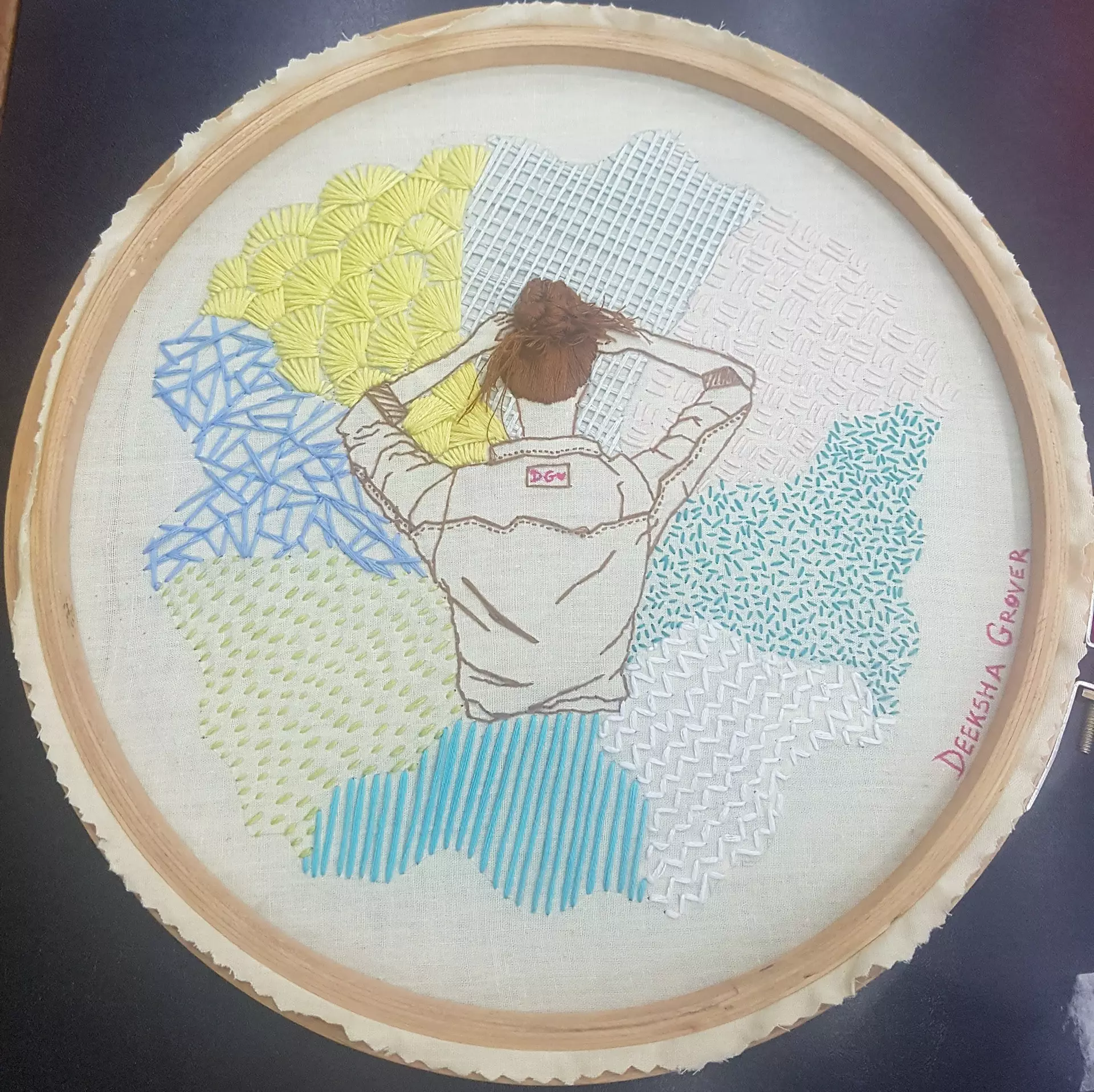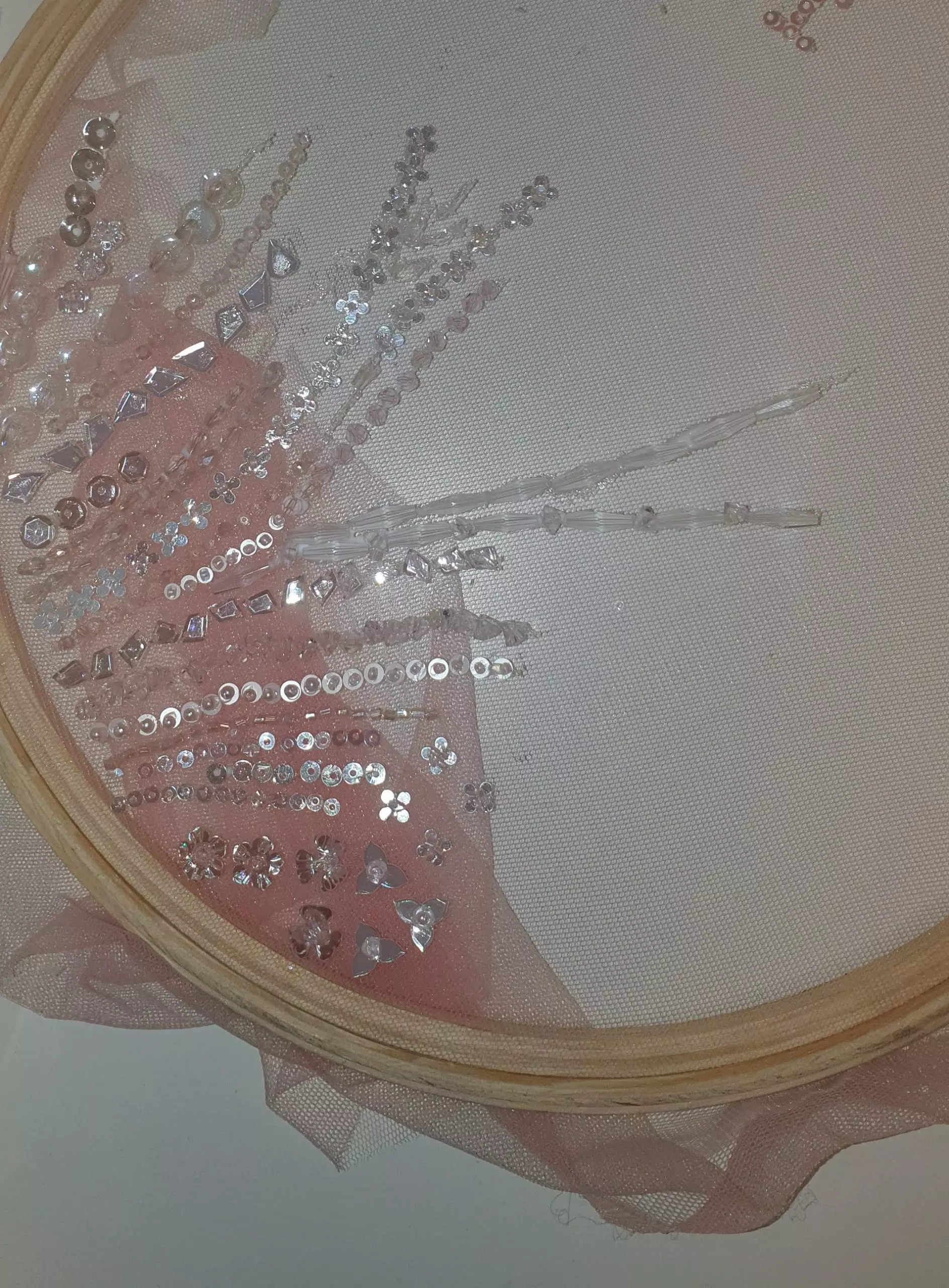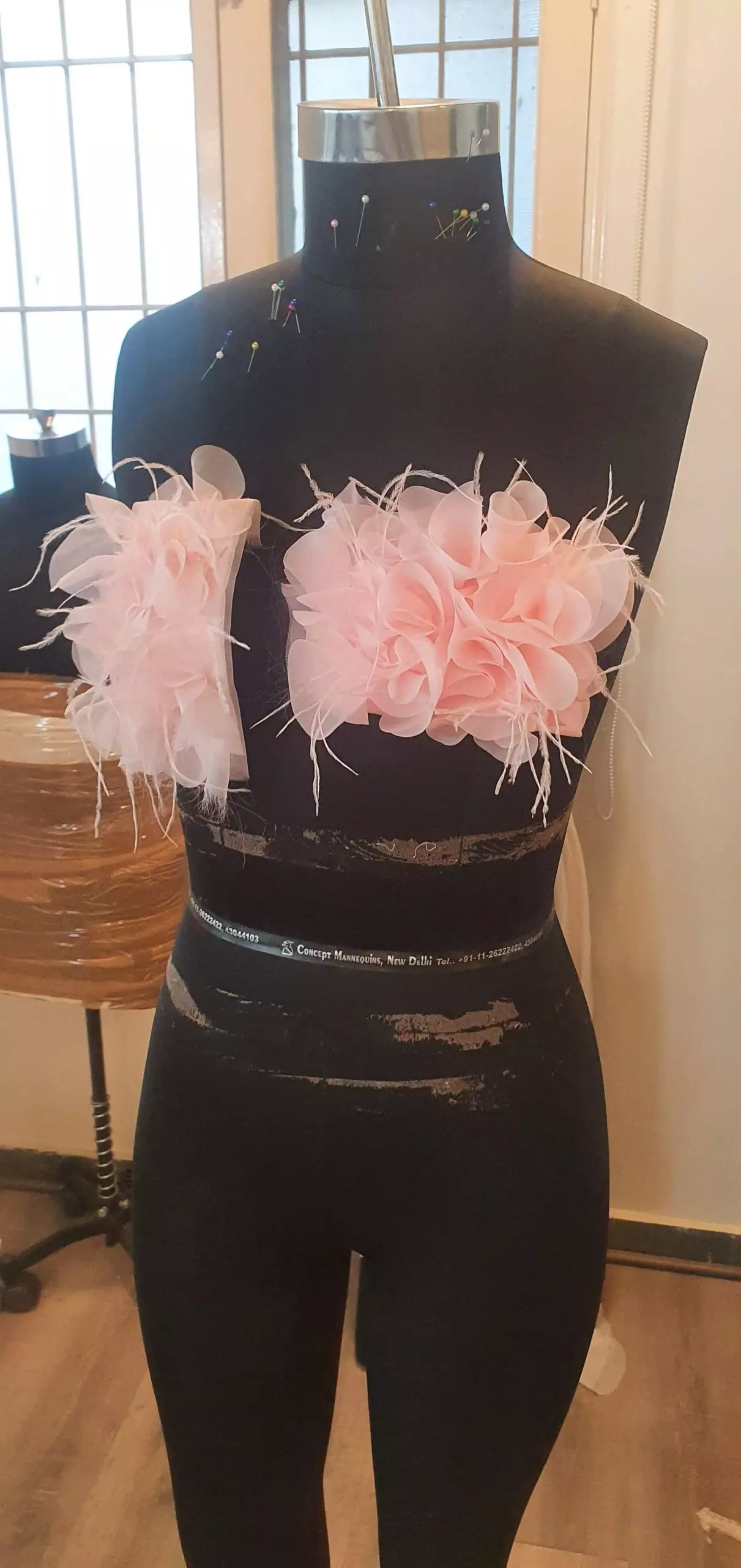 deeksha2024-03-13T11:52:08+05:30Embroidery Swatch Samples & Surface Ornamentation Surface Ornamentation turned OutfitsCrystal & thread work on the blouse & on the cutout dori border with tassels throughout. Pearl and plt sequin work on a Georgette Lehenga Nalki, Cutdana, Swarovski, Crystal, Bead, Sequin e.t.c were used to create 11 motifs that were then repetitively used on both, the blouse & the jacket
